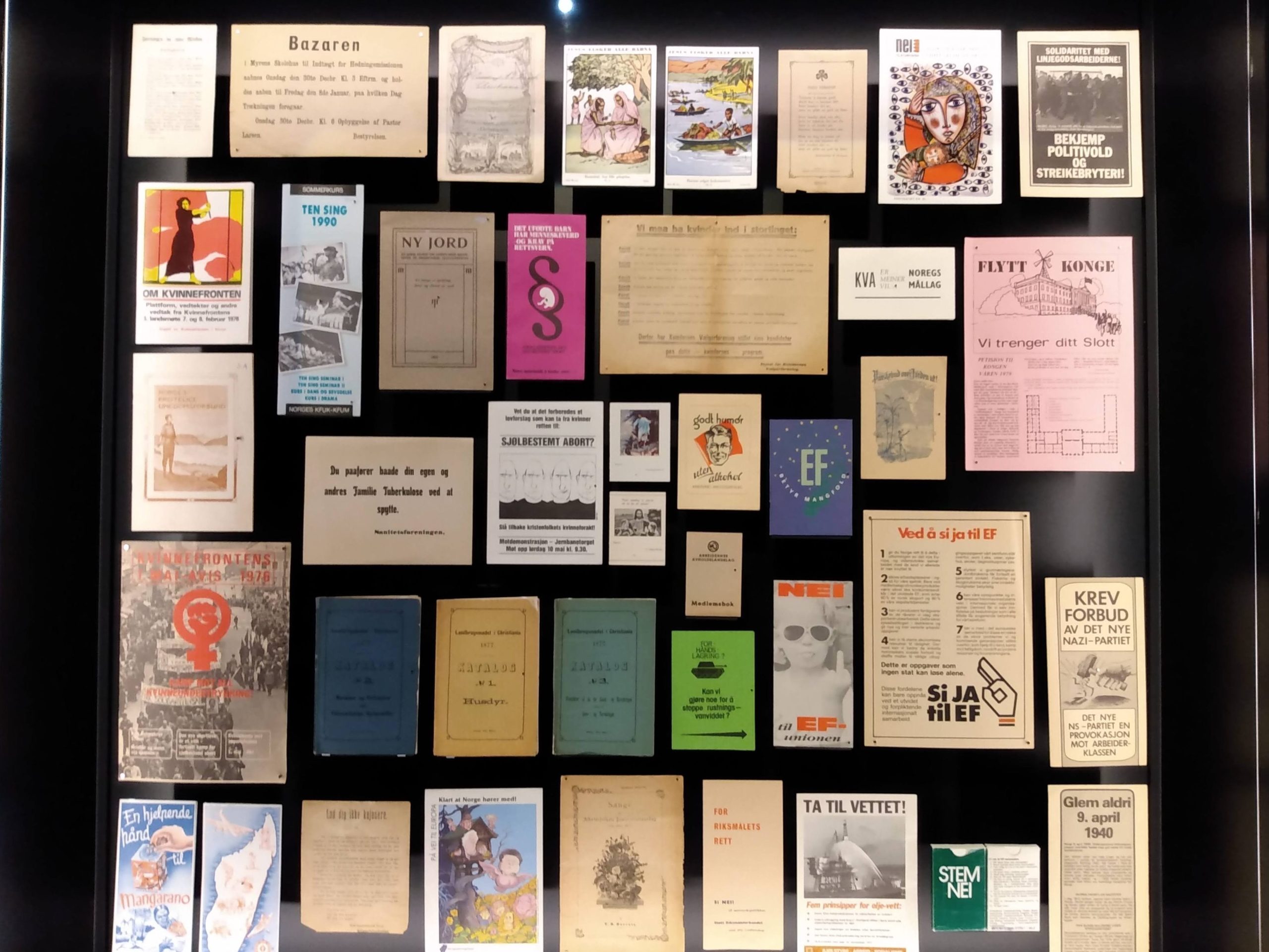 Wenn man untersucht, wann die ausgestellten Medien publiziert wurden, erkennt man, dass nicht alle Perioden gleichmäßig repräsentiert sind: vier von 30 Werken stammen aus der Zeit unter dänischer Herrschaft, elf aus der Zeit der norwegisch-schwedischen Union und zwölf Werke aus der Zeit des unabhängigen Norwegens, davon sind sechs nach dem Zweiten Weltkrieg und wiederum nur zwei im 21. Jahrhundert veröffentlicht worden.