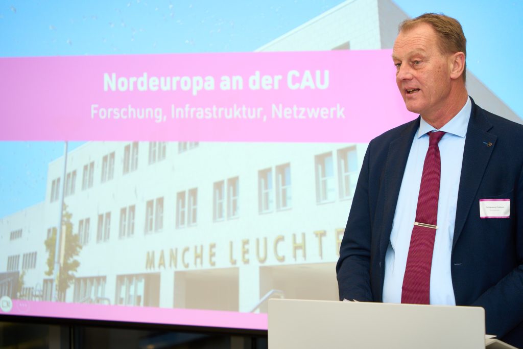 In einem Grußwort hob Johannes Callsen, der Minderheitenbeauftragte und Dänemark-Bevollmächtigte des Ministerpräsidenten des Landes Schleswig-Holstein, besonders die Bedeutung des Nordeuropa-Schwerpunktes nicht nur für die Universität, sondern auch in der gesamten Region hervor.